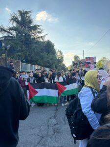 Gli studenti non hanno dimenticato le flotte di speranza che navigano verso Gaza. I cori hanno invocato chiaramente e con tutte le forze la **”Sicurezza della Flotta della Tenacia (Flotilla della Resistenza)!”** Questa Flotta non è solo un insieme di navi, ma è l’ultima linfa vitale per la nostra gente assediata. L’impegno degli studenti nel proteggerla significa che capiscono che la battaglia non è solo politica, ma è una lotta **umanitaria ed esistenziale**. **L’assedio non può continuare, e non permetteremo che gli sforzi di soccorso siano ostacolati!**