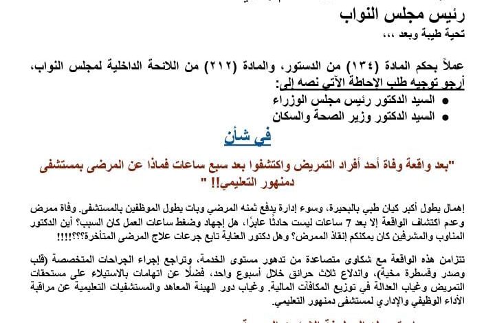 تدهور الرعاية الطبيةبمستشفى دمنهور الدكتورةسارةالنحاس