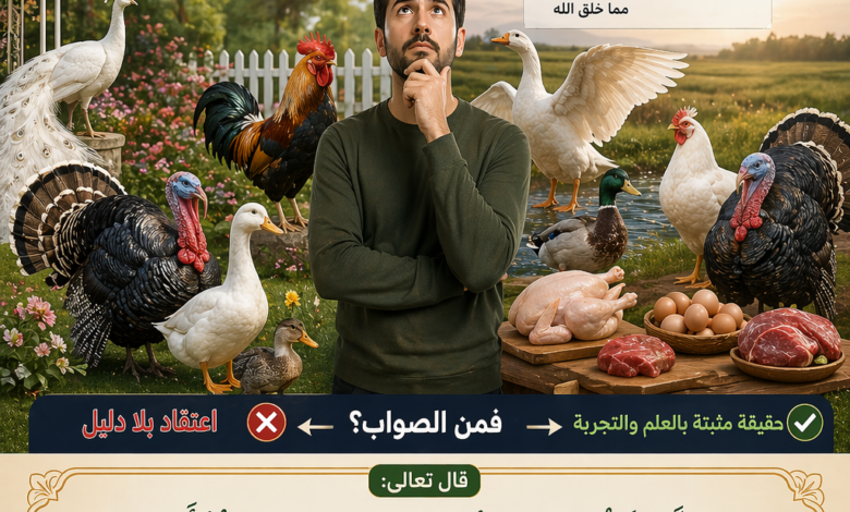 علم الأحياء والتاريخ يقول تم تدجين الدجاج والبط والإوز منذ آلاف السنين الهدف الأساسي اللحم البيض يعني الإنسان لم يخترها للزينة… بل للغذاء منذ البداية